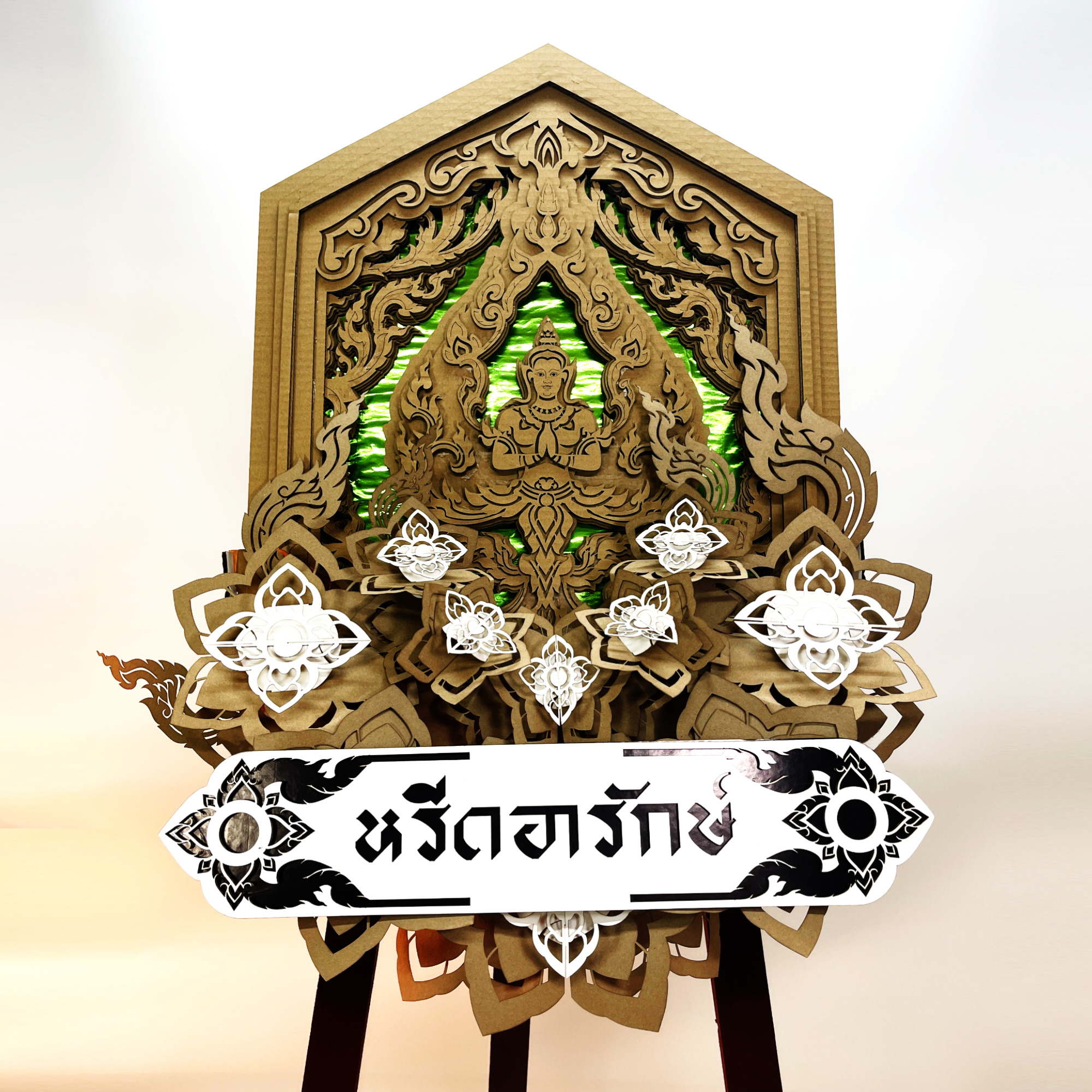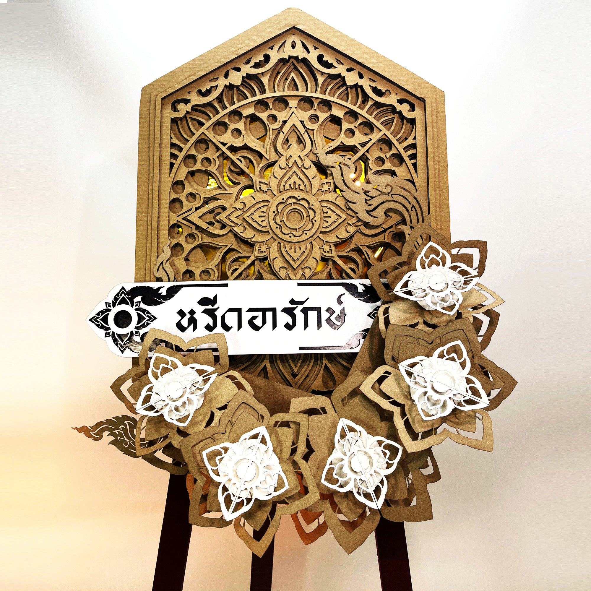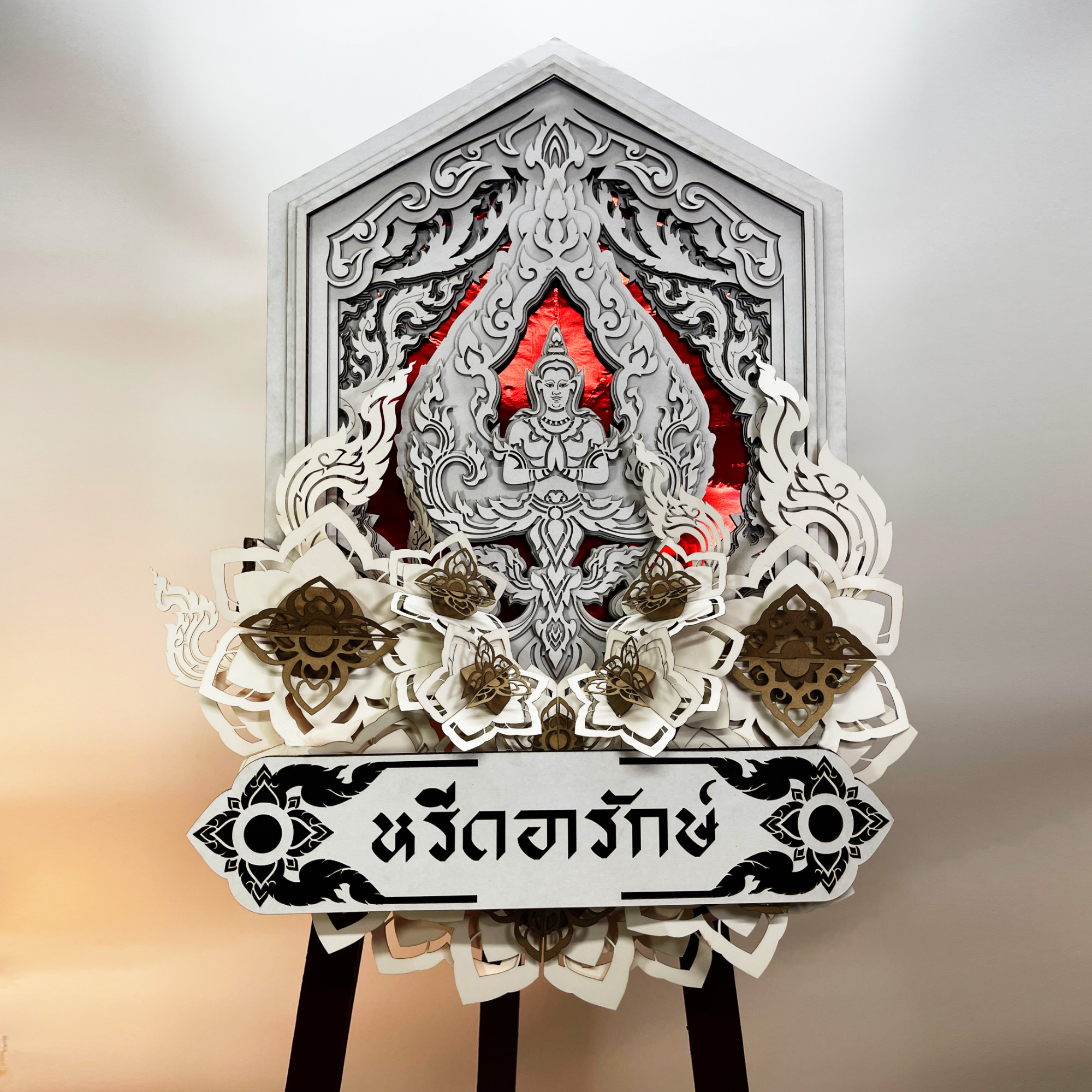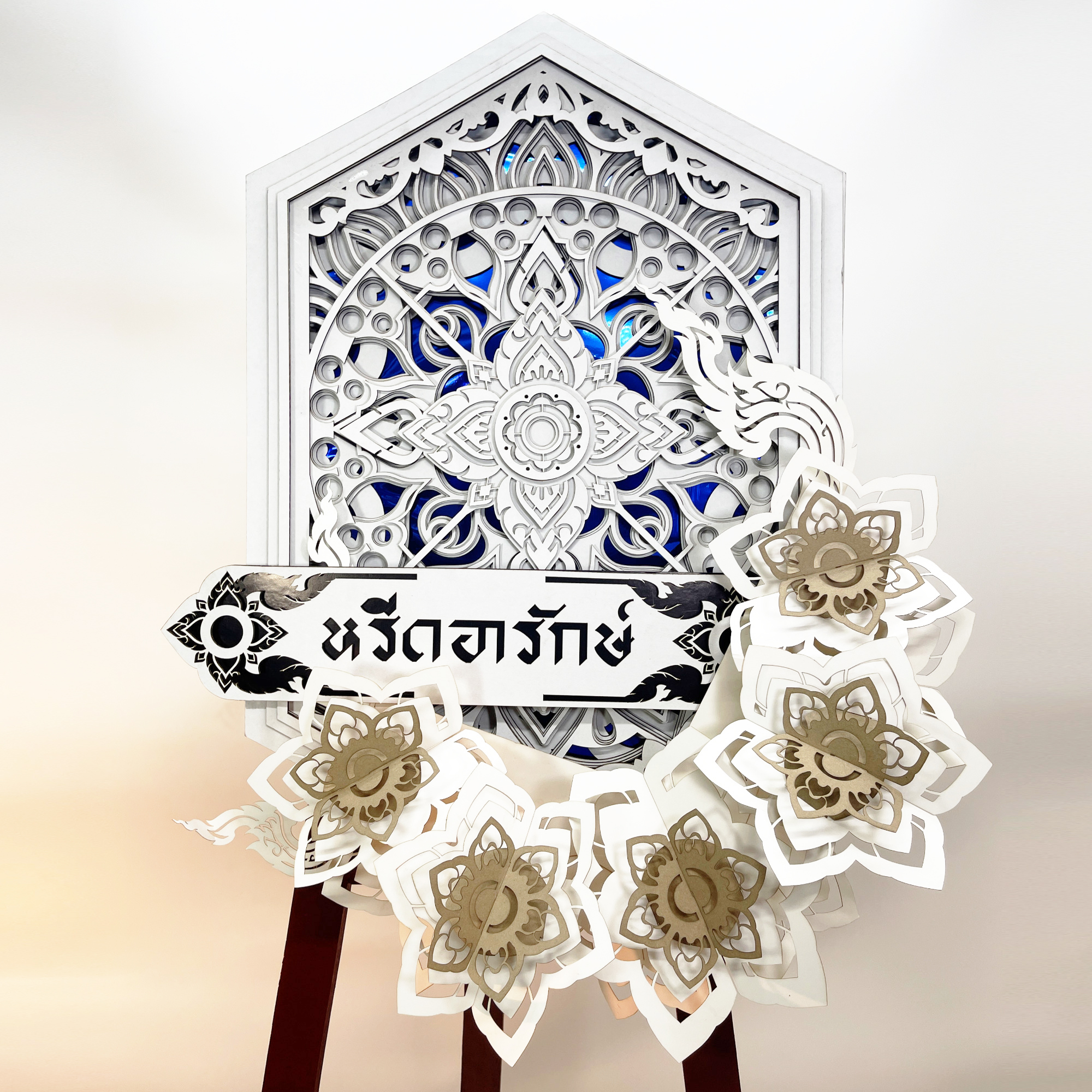 แนวคิดและความหมาย: “จิรา” [Jira] คือความยั่งยืนเหนือกาลเวลา “รักษ์” (Ruk) คือการจารึกและเก็บรักษาไว้ “จิรา รักษ์” จึงหมายถึง “ศิลปะแห่งความทรงจำอันเป็นนิรันดร์”ลวดุลายอันวิจิตรที่ซ้อนทับกัน คือความผูกพันและความทรงจำที่ไม่เคยเลือนหาย ส่งสว่างด้วยแสงสีทองแห่งคุณค่าและความดีงาม เป็นตัวแทนของความระลึกถึงอันสง่างามที่จะคงอยู่ในใจเสมอไป กว้าง 65 เซนติเมตร ขาว บับ เซนติเมตร นำหนัก 1กิโลกรัม